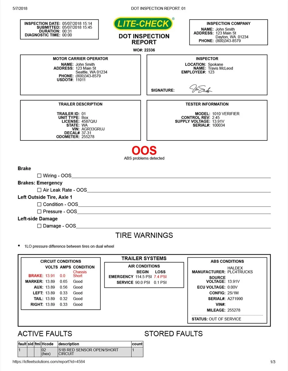 A single technician can complete a safe, thorough DOT trailer inspection in less than 30 minutes. Our patented reporting system automatically inserts electrical, lights, air, brakes and advanced ABS diagnostics into the final report.